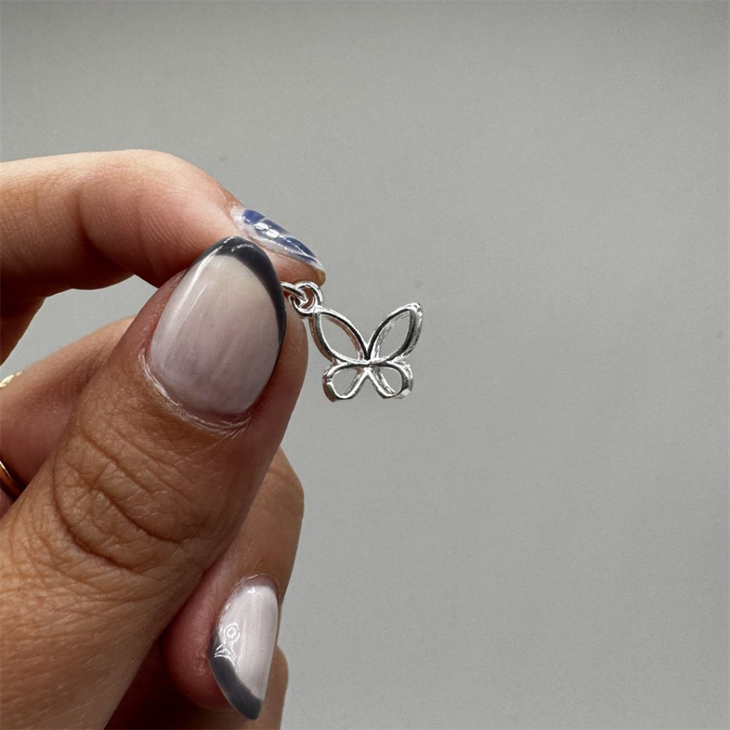 Un dije liviano y delicado que simboliza transformación, libertad y belleza, perfecto para aportar un toque especial a cualquier look.