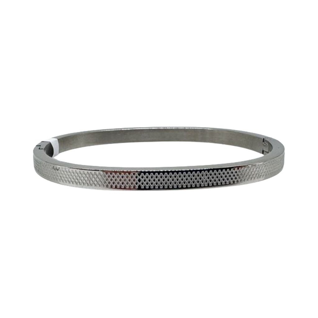 Cuenta con sistema de apertura, lo que permite colocarla fácilmente y adaptarla con comodidad a la muñeca. Gracias a la resistencia del acero quirúrgico, es una joya duradera que mantiene su brillo y calidad con el uso diario.